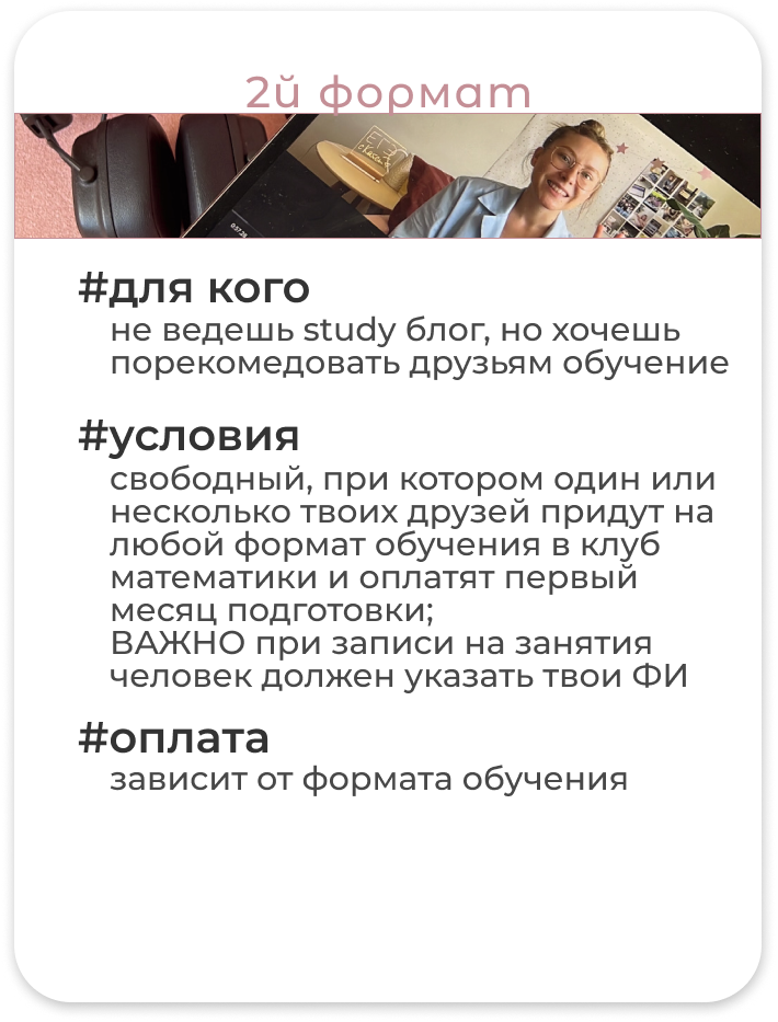 Я запустила программу лояльности для амбассадоров нашего клуба математики. Ниже ты можешь познакомиться с более подробной информацией об условиях программы лояльности.